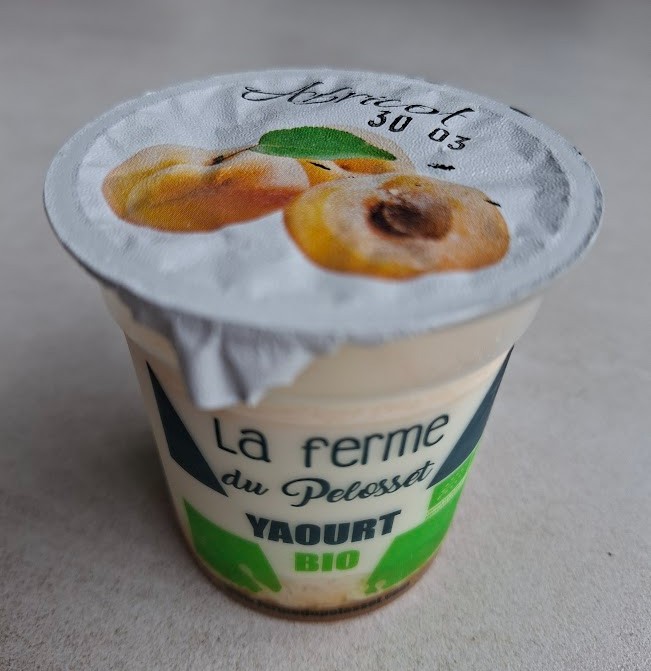 Yaourt au lait bio et à la confiture d’abricots bio de la Ferme du Pelosset